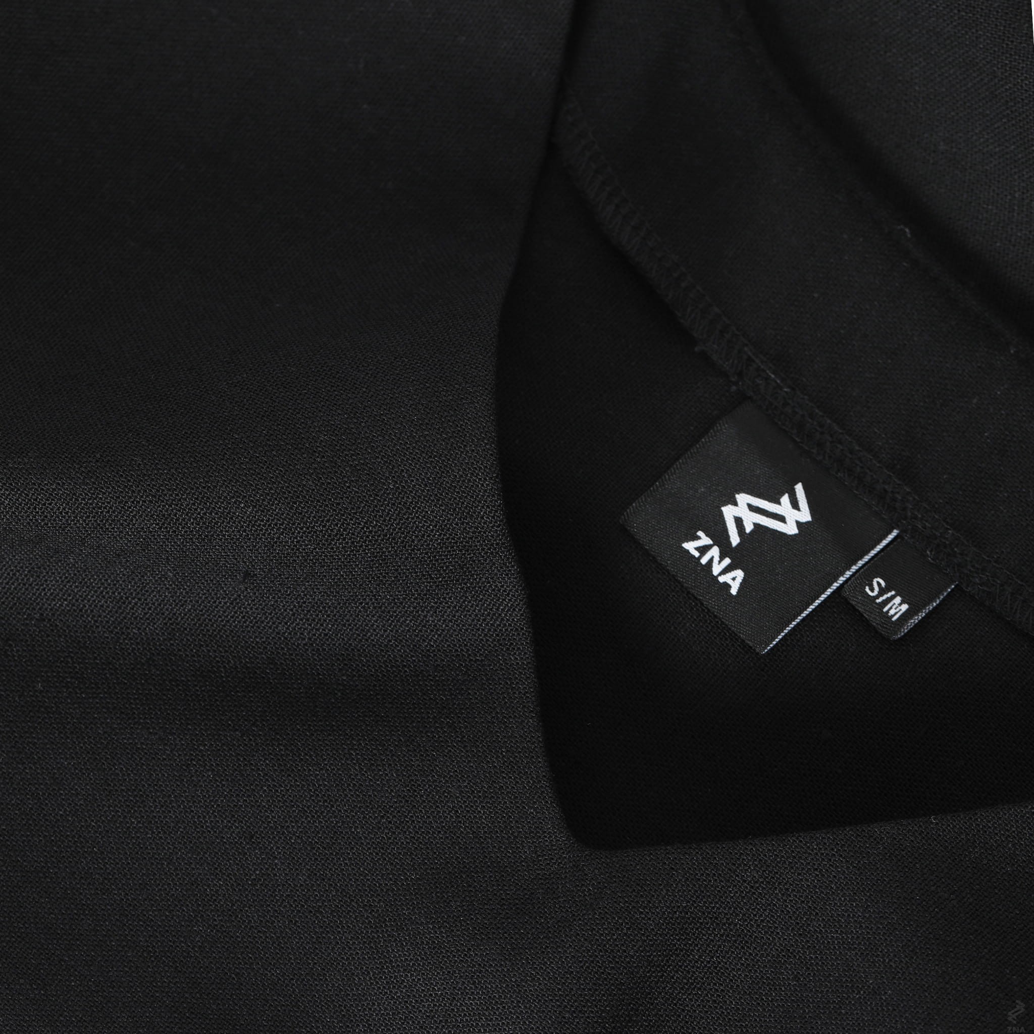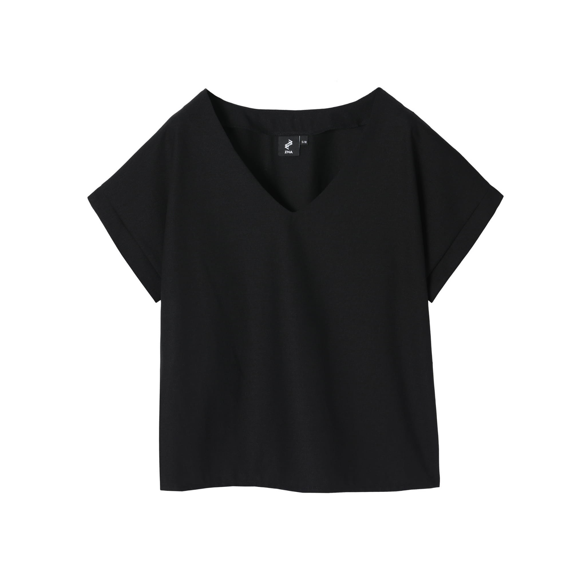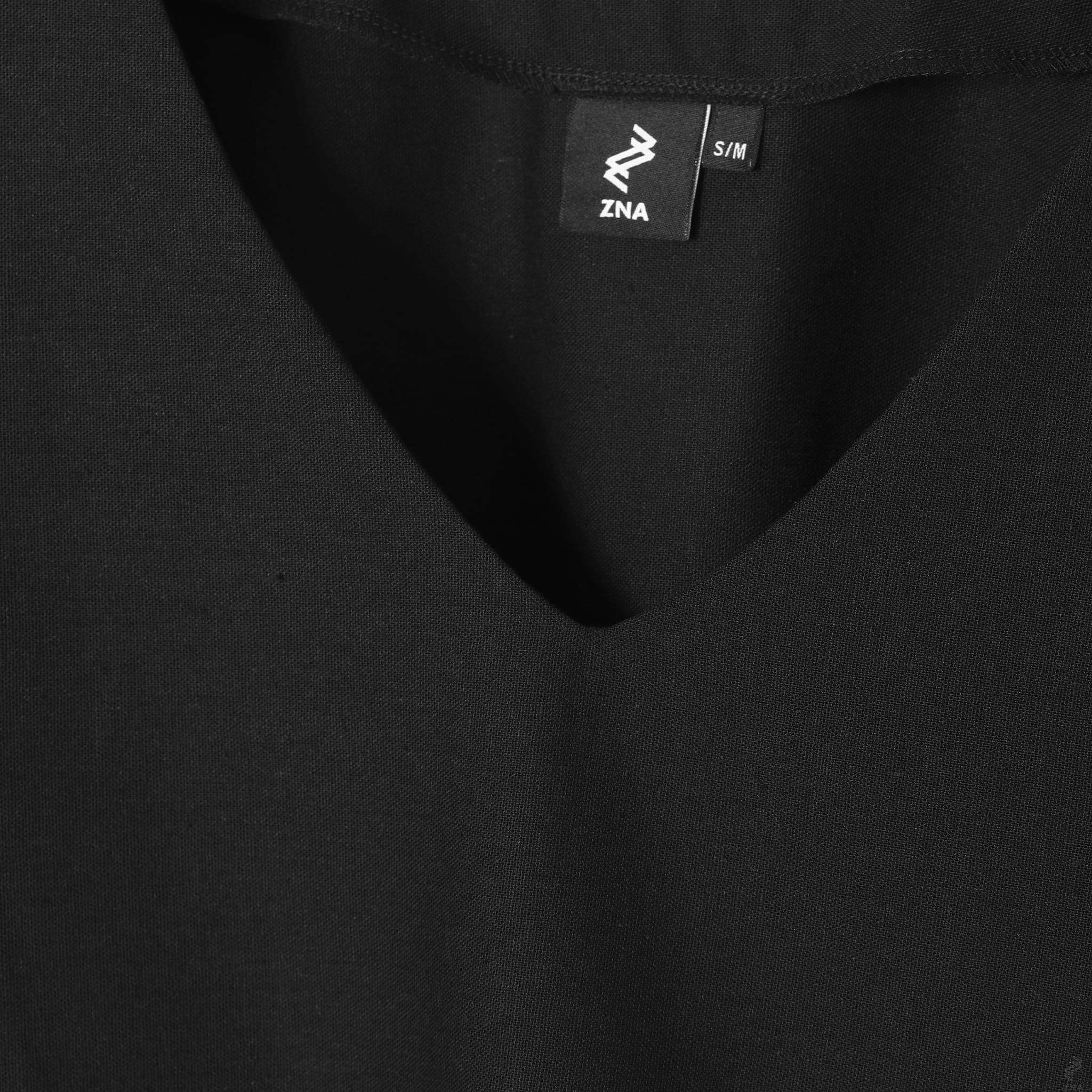 Swobodna bluzka oversize o pudełkowym kroju. Krótki rękawek wykończony szerokim mankietem. Kobieca linia dekoltu łagodnie układa się w kształt litery V. Wykonana z wysokogatunkowej tkaniny z recyklingu. Oznacza to, że przędza wykorzystana do produkcji tego materiału została w całości pozyskana ze starych ubrań lub innych tkanin.