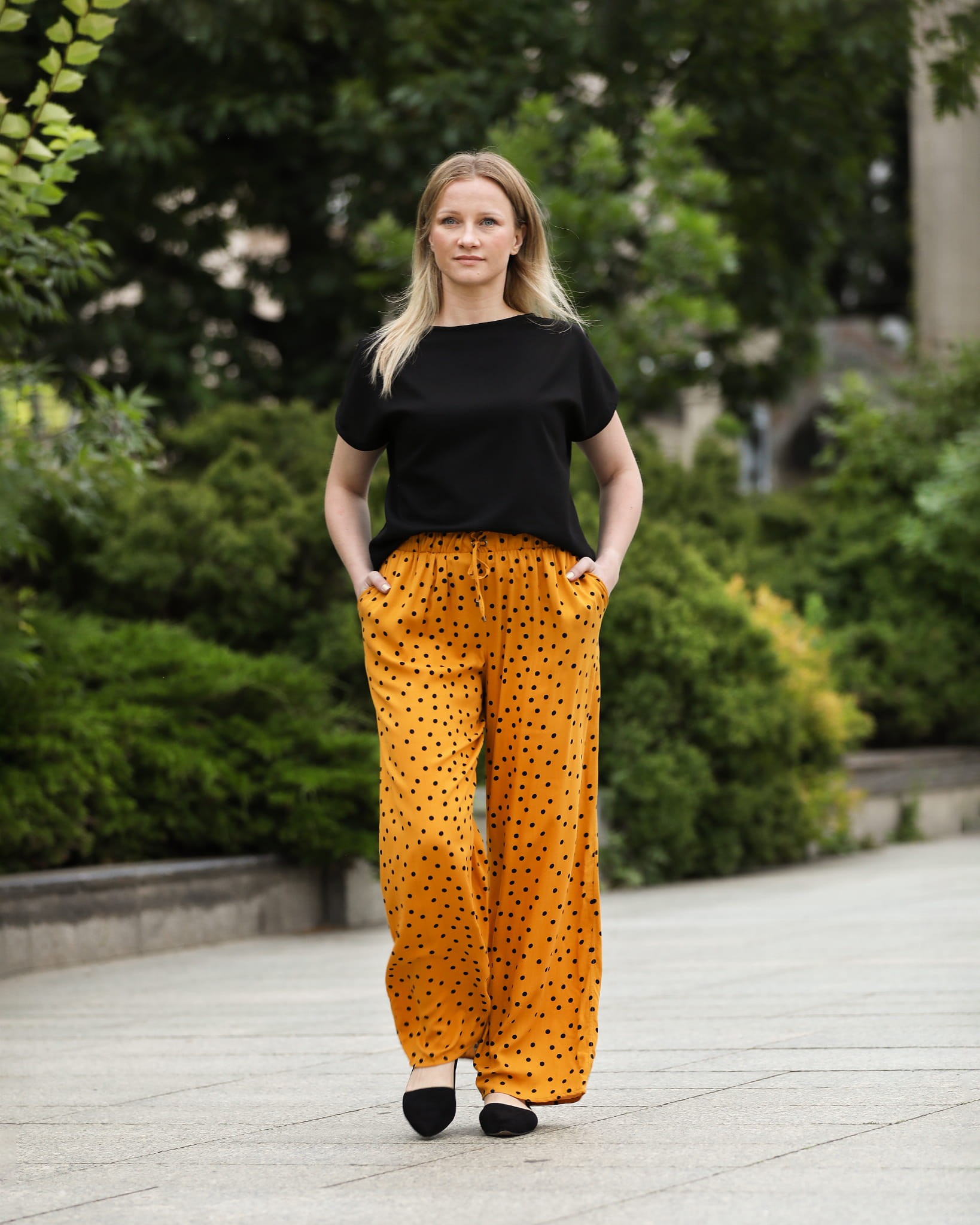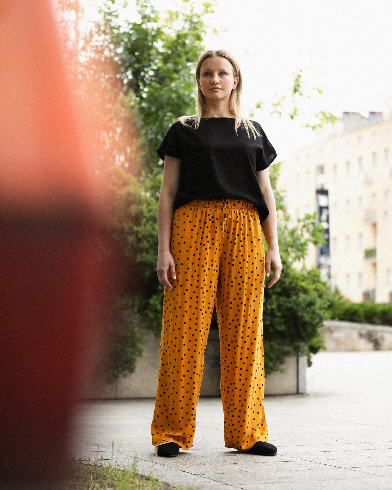 Swobodna bluzka oversize o pudełkowym kroju. Wykonana z wysokogatunkowej tkaniny o lnianym splocie. Len w połączeniu z wiskozą świetnie sprawdza się w użytkowaniu. Klasyczna czerń przyda się Wam w niejednej stylizacji wiosną i latem :)
