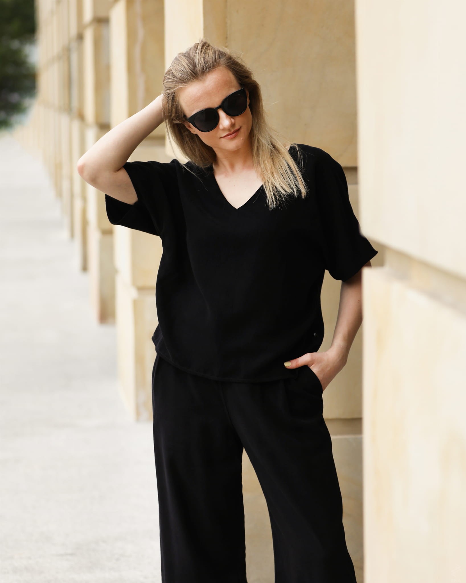 Bluzka wraz ze spodniami Kina tworzy bardzo zgrany komplet.